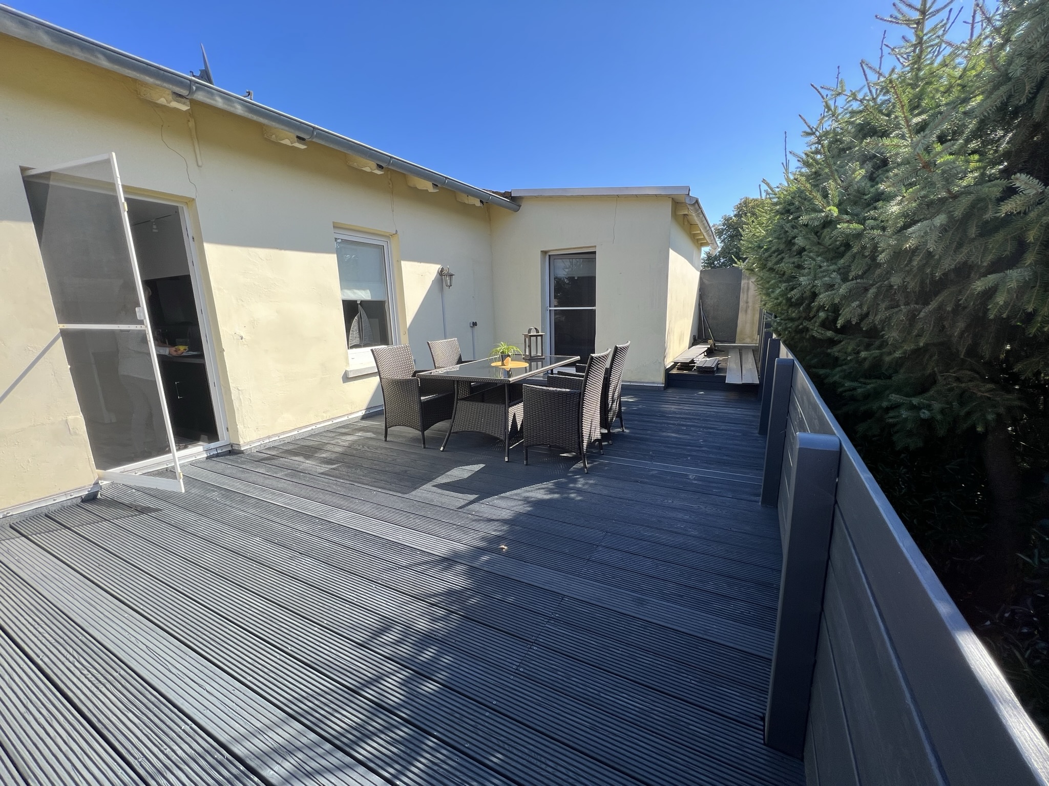überdachte Südostseite, ca. 16 m2, Gartentisch mit 6 Stühlen